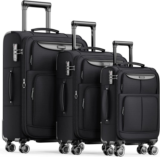 Luggage Sets 3 Piece Softside Expandable Lightweight Durable Suitcase Sets Double Spinner Wheels TSA Lock