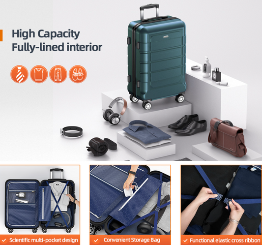 Luggage Sets Expandable PC+ABS Durable Suitcase Sets Double Wheels TSA Lock Sea Blue