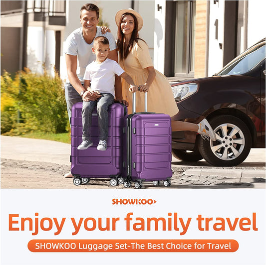 Luggage Sets Expandable PC+ABS Durable Suitcase Sets Double Wheels TSA Lock Luggage Set Purple