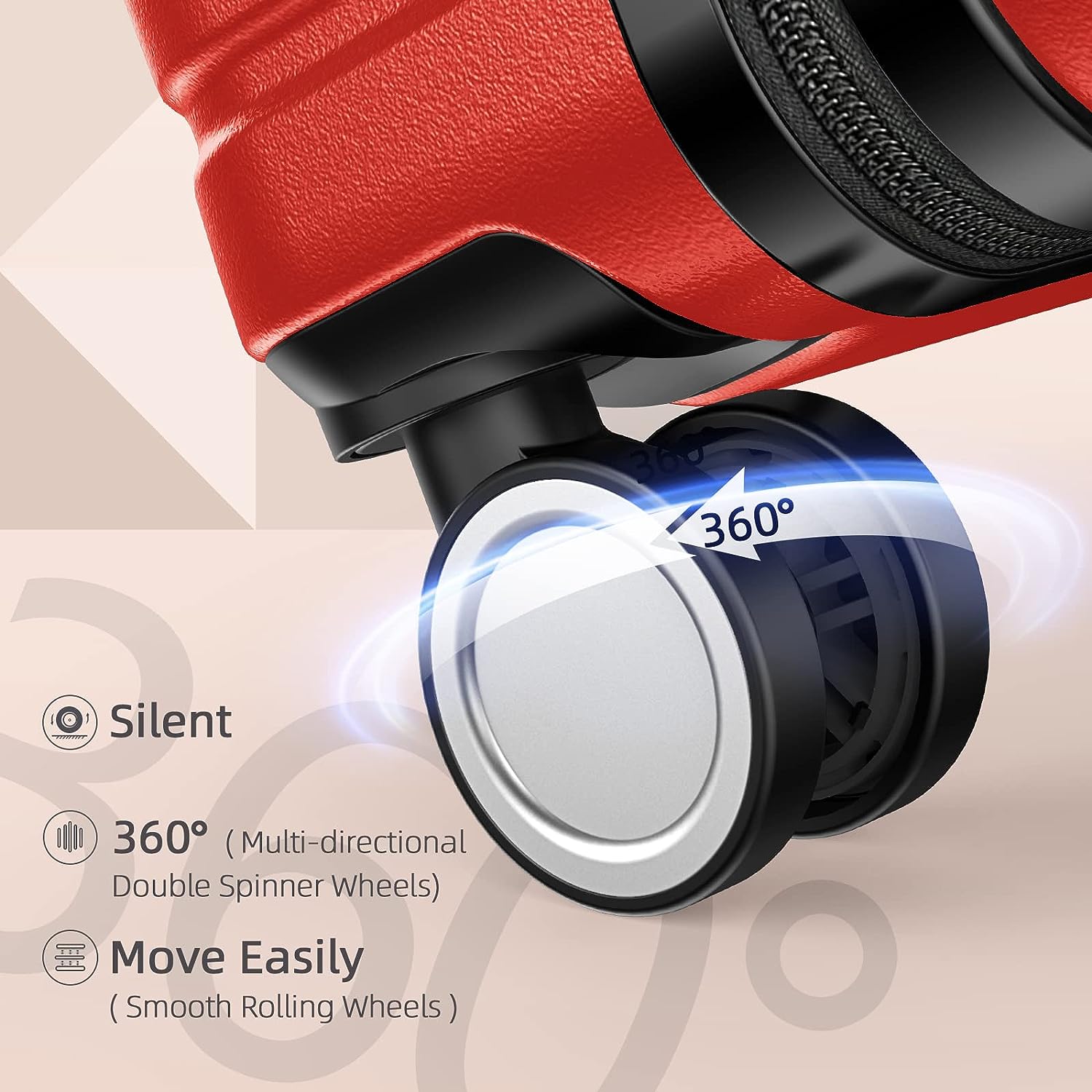 - Suitcases with Wheels: 360 degree multi-directional 4 spinner wheels offer effortless mobility in any direction. Double wheel design is more durable.