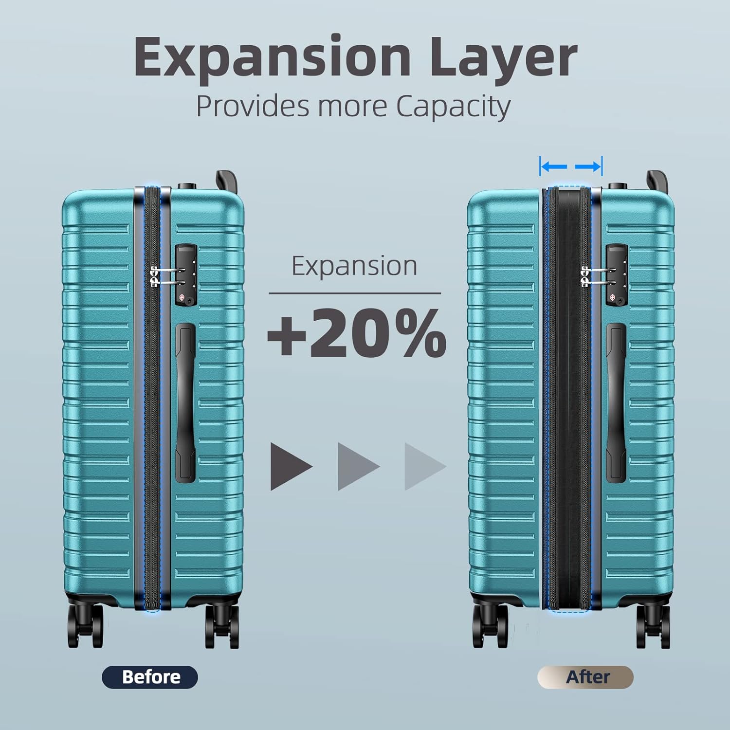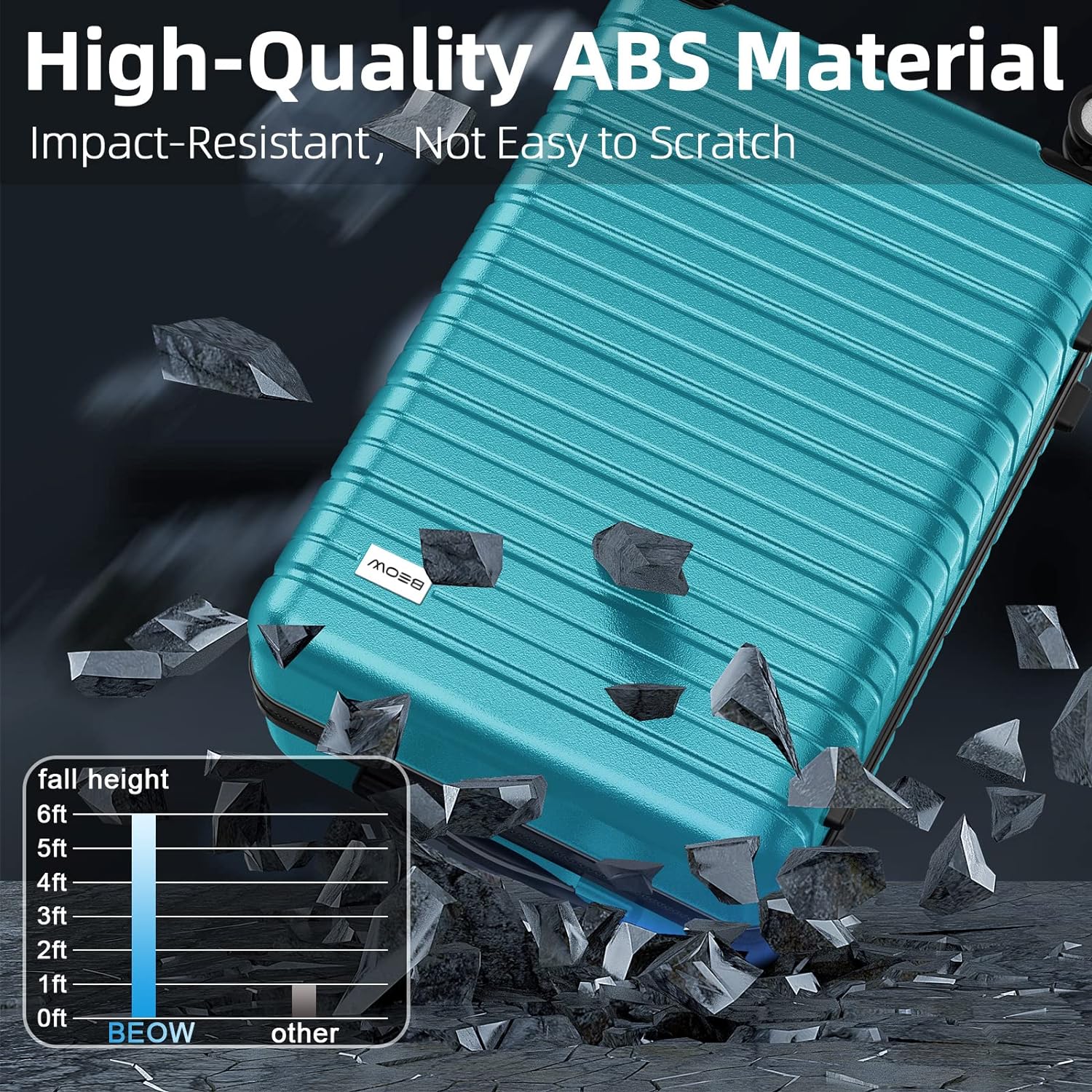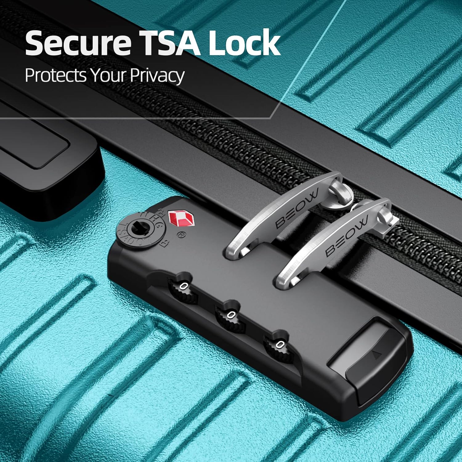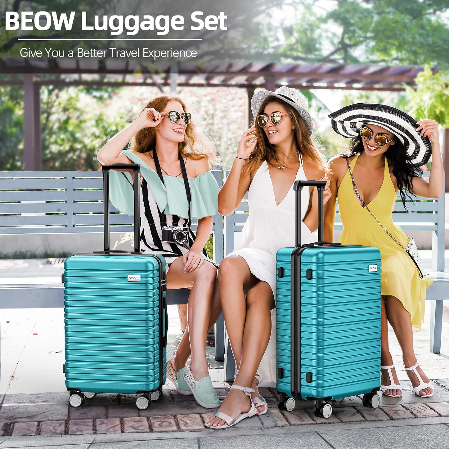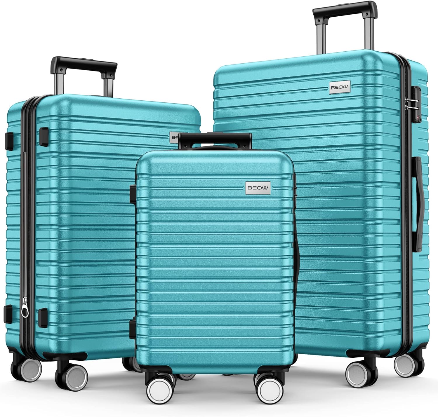 3 Piece Luggage set: 20 ''(convenient to carry to the aircraft), 24", 28 "(ONLY 28in and 24in are expandable, adding 20% space capacity for hardshell luggage) High Quality Luggage Sets: BEOW luggage set made from extra strong ABS material, which is lightweight and extremely durable. Features textured finish to prevent against scratches, keeping lightweight luggage set beautiful trip after trip. Suitcases with Wheels: 360 degree multi-directional 4 spinner wheels offer effortless mobility in any direction. Double wheel design is more durable. Unique Design: SIDE-MOUNTED TSA LOCKS, which only you or a TSA agent have easily open hardside suitcase when traveling, TSA Lock for security and peace of mind for you. Suitcase set of 3 have sturdy aluminum 3-Step Telescoping Handle.Soft flip side of top handle and side carry handle can protect your fingers.