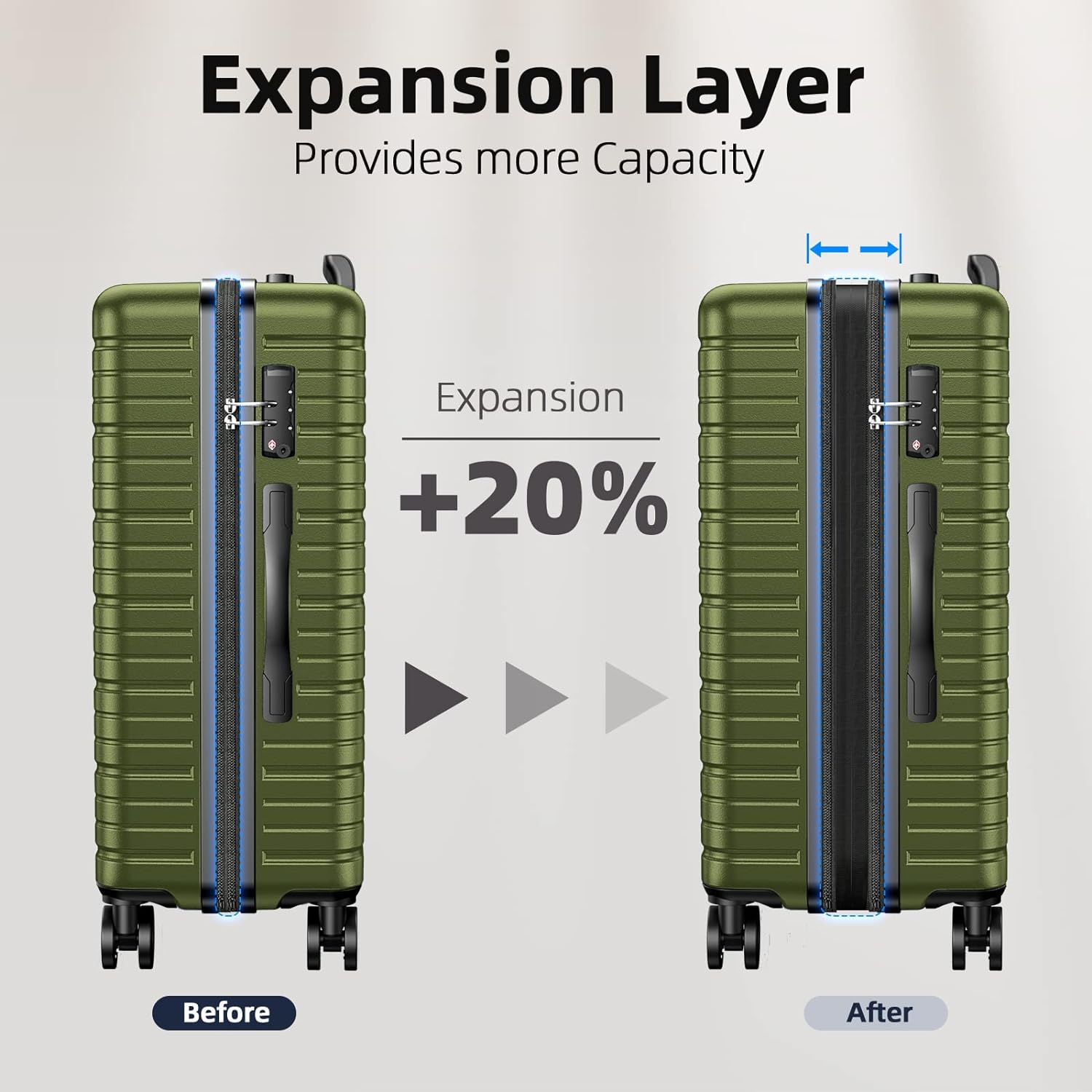 - 4 PIECE LUGGAGE SET: 16'', 20 ''(convenient to carry to the aircraft), 24", 28 "(ONLY 28in and 24in are expandable, adding 20% space capacity for hardshell luggage)
