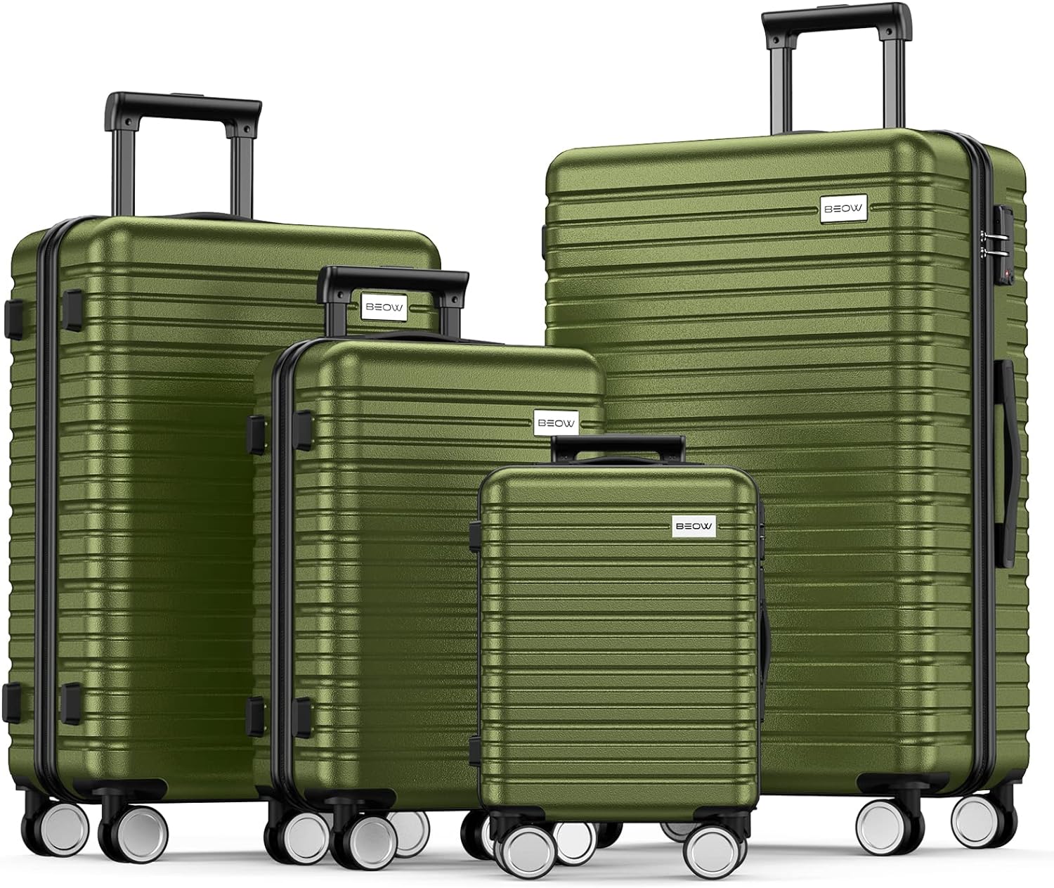 - HIGHT-QUALITY 4 PIECE LUGGAGE SETS: BEOW luggage set made from extra strong ABS material, which is lightweight and extremely durable. Features textured finish to prevent scratches, keeping lightweight luggage set beautiful trip after trip.