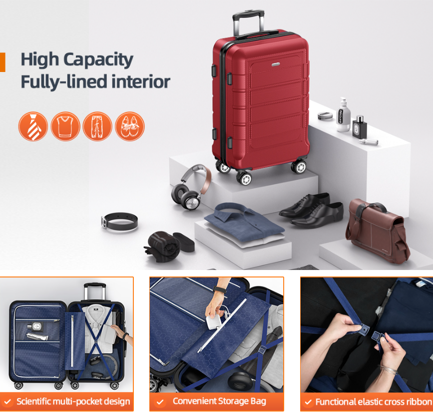 - Top Quality Luggage Sets: Made of brand new extra-thick PC+ABS materials for hardshell, which make the luggage more durable, lighter and impact-resistant. Features textured finish to prevent against scratches, keeping cases beautiful after a trip. 20in is best for carryon, 24in & 28in expands 20% for more Spaces. Capacity : 20in38L 24in60L 28in 93L.