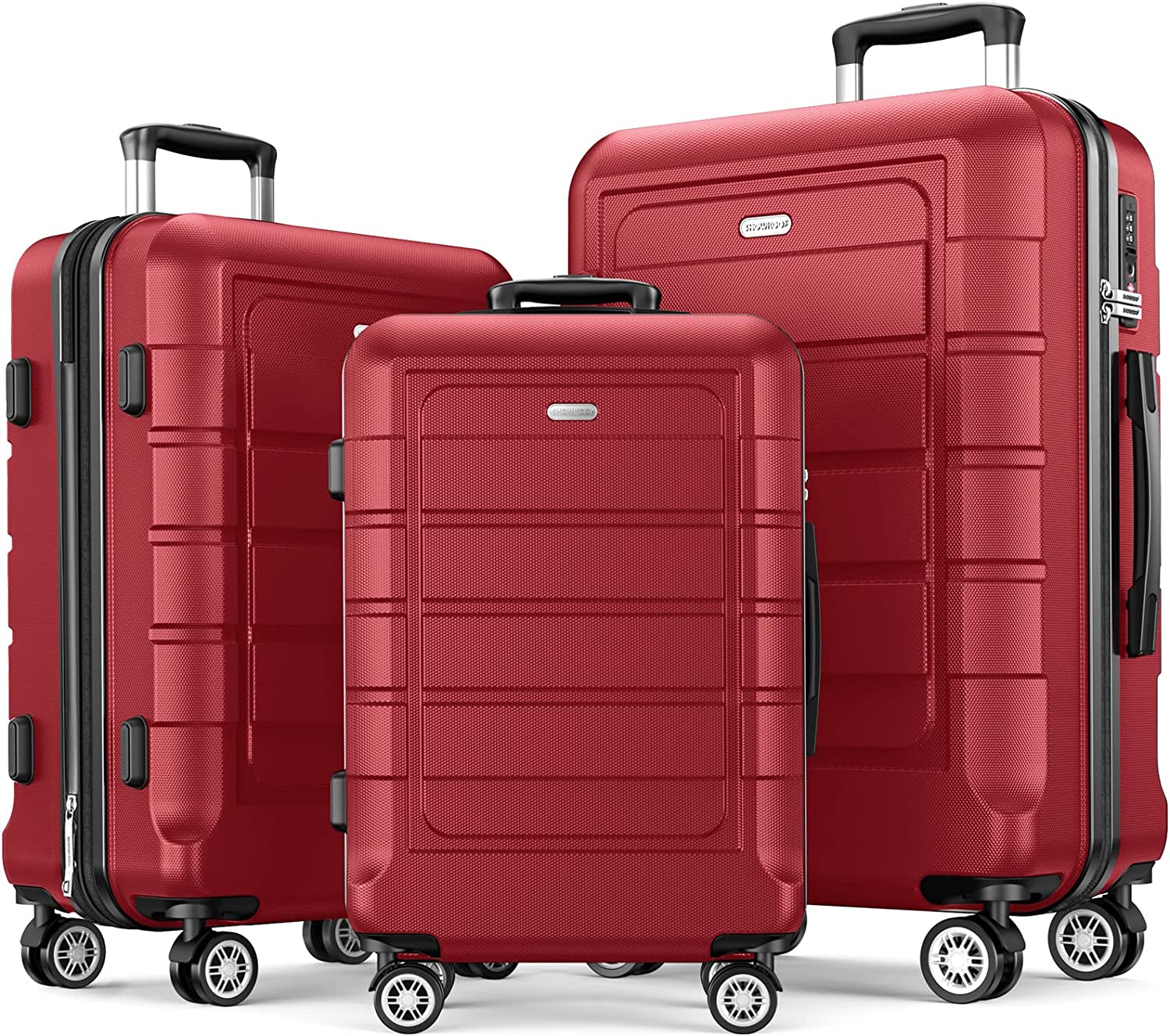 Luggage Sets 3 Piece Expandable PC+ABS Durable Suitcase Double Wheels TSA Lock Bright Red