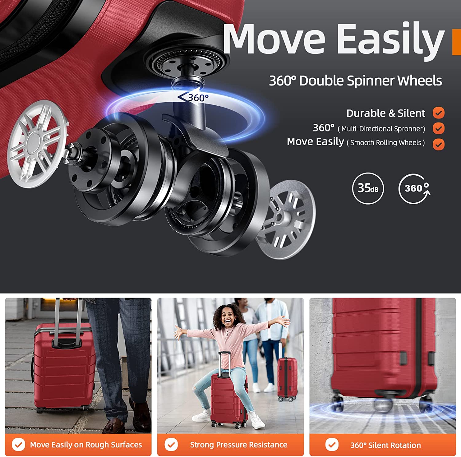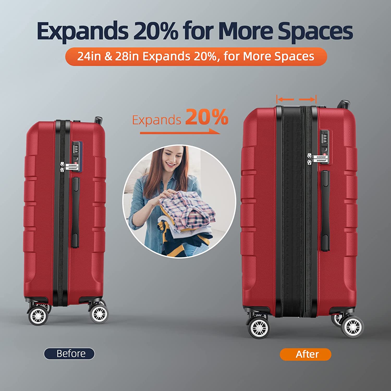 Top Quality Luggage Sets: Made of brand new extra-thick PC+ABS materials for hardshell, which make the luggage more durable, lighter and impact-resistant. Features textured finish to prevent against scratches, keeping cases beautiful after a trip